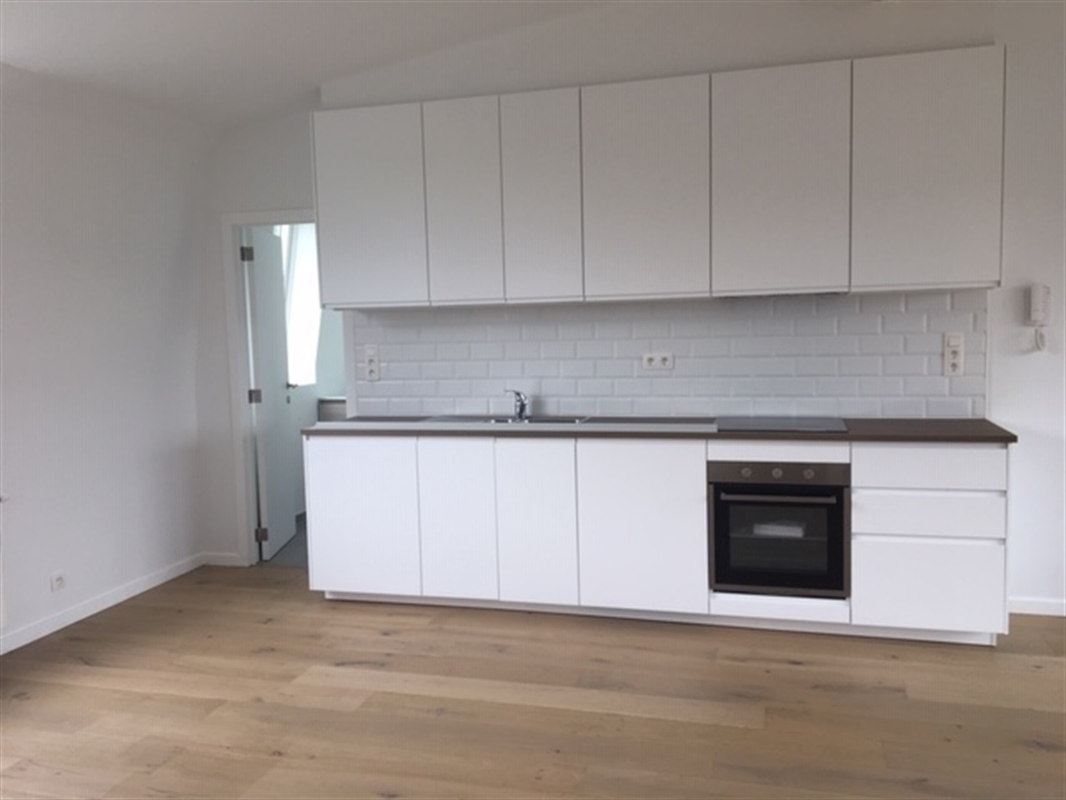 Open keuken, volledig geïnstalleerd, voorzien van alle toestellen (oven, dampkap, ceramische kookplaat, vaatwasser, koelkast en diepvriezer).