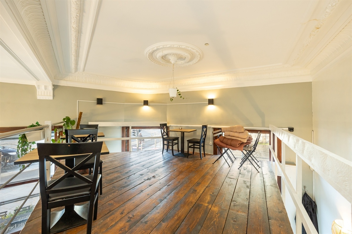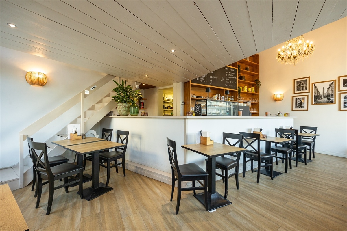 Gelijkvloers bevindt zich een volledig vernieuwd restaurant met keuken. Vergunning voor groot terras werd verkregen.