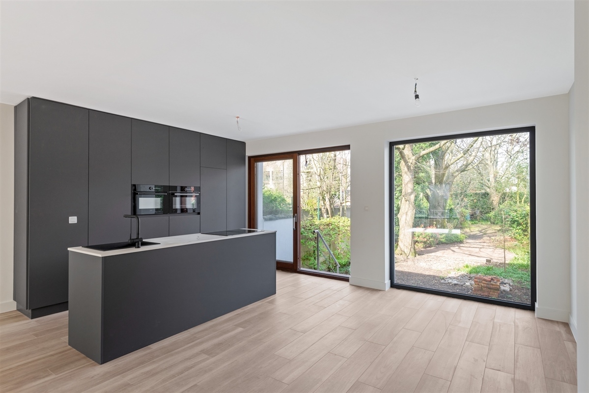 Prachtige, open, volledig geïnstalleerde keuken met ingemaakte kasten, ovens, vaatwasser, koelkast. Kookeiland op krasvrij Dekton werkblad met inductieplaat.